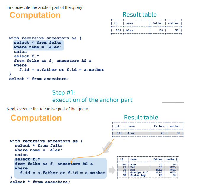 1. Recursive part에 join으로 anchor와 결합되어야함
