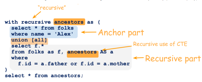 1. Recursive part에 join으로 anchor와 결합되어야함