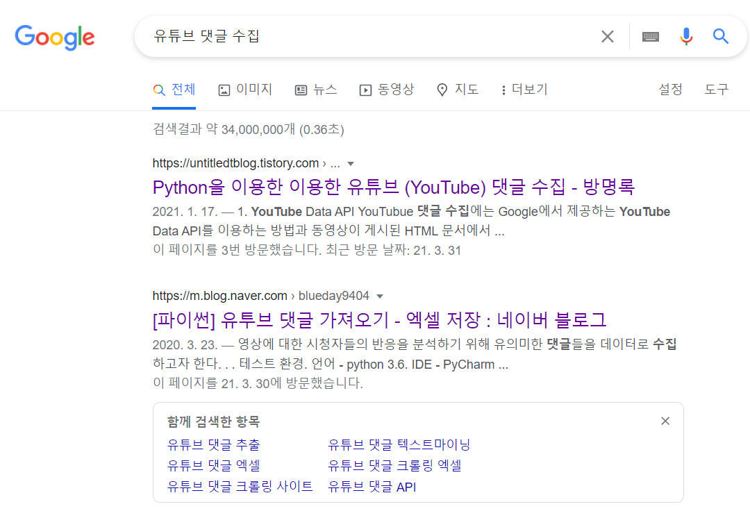 | [댓심]댓글 크롤링 프로그램 제작1 : 코드 완성 (0) | 2021.04.07 |
