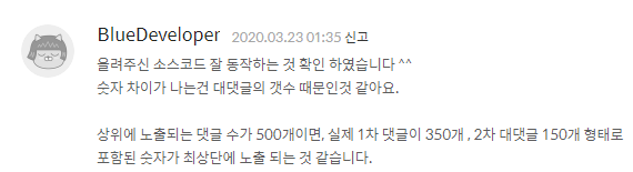 확인해 보니 대댓글 수가 산정되어 총 댓글 수가 상단에 노출되지만 내가 제작한 크롤링 프로그램에서는 대댓글을 수집하지 않아 갯수에 차이가 보이는 듯 하다. 대댓글을 크롤링 해야하는지, 또 크롤링 한다면 어떤 정보가 필요한지에 대한 판단이 필요한 상황이다.