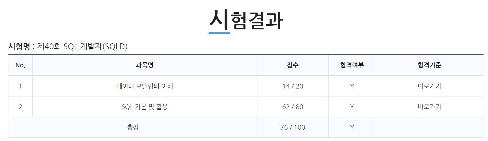 결과론적으로(붙은 걸 보니..) 양치기로 준비하는 시험이 맞는 것 같다. 개념이해 따로 문제 따로 푸는 것 보다는 어떤 유형의 문제가 많이 나오는지 풀어보면서 개념을 보강하는 느낌으로 공부하는 게 더 효율적이다. 분명 처음 풀다보면 진짜 하나도 모르는 부분이 나올텐데 그래도 그냥 다 외운다 생각하고, 그 방법대로 공부하는게 맞다. 특히 쿼리를 채워넣는 2과목 SQL 기본 및 활용 부분은 직접 쿼리를 짜보거나 써봐야 하기 때문에 개념을 다 이해하고 푸는 것 보다 어떤 상황에서 어떤 쿼리를 짜는지 확인하면서 공부하는게 훨씬 좋다. 그 이외에는 암기이니 성실하게 외우면 된다.