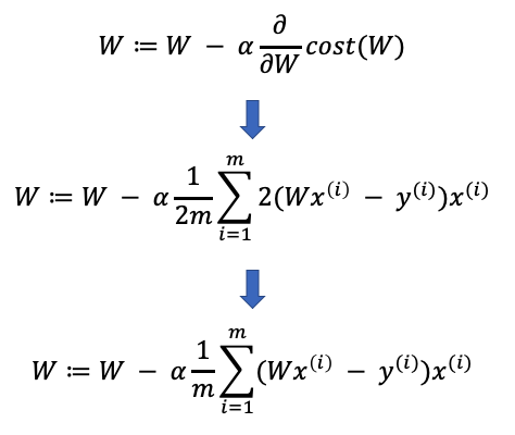 수학적 개념으로 이해해보면 극값, 즉 미분값이 0이 되는 점을 찾아가는 과정 정도로 이해하면 될 것 같다. 머신러닝에서의 경사하강법으로 이해해보면 비용함수(Cost Function)를 최소화 하기 위한 과정이다. 비용 함수는 실제값과 예측값의 차이를 가장 작게 만드는 가설함수를 도출하는 함수이다.